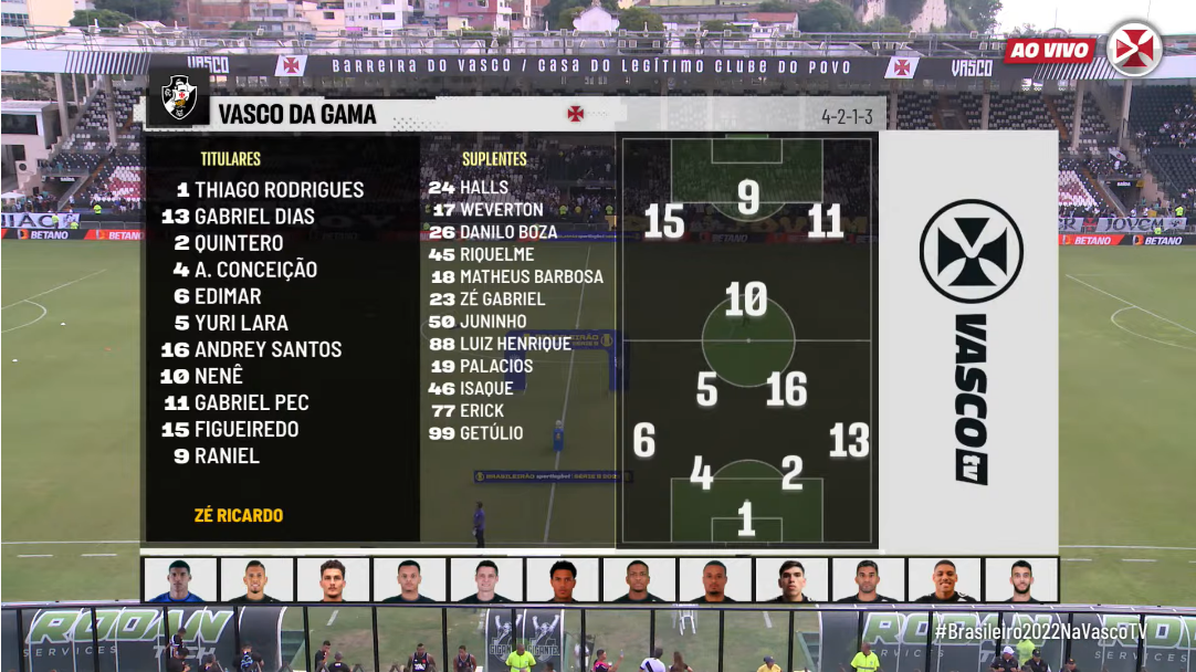 14:56 - Confira a escalação do Vasco para o jogo contra o Bahia; Figueiredo volta ao time titular