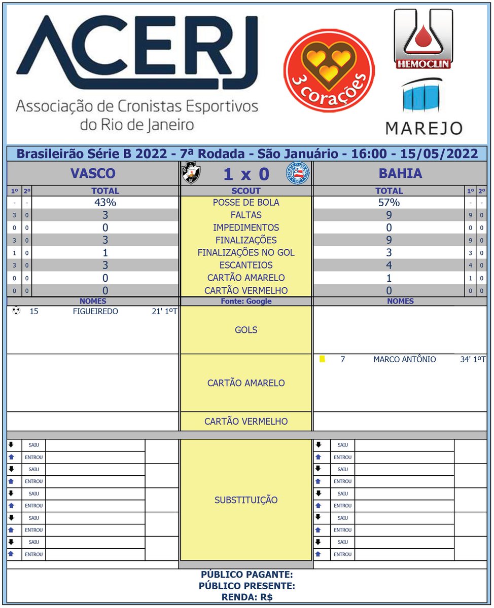 Scout do 1º Tempo de Vasco e Bahia pela 7ª Rodada do Campeonato Brasileiro da Serie B 2022 em São Januário (Fonte: Google) #Acerjinforma #BrasileiraoSerieB #VASxBAH #ECBahia #Vasco @BrasileiraoB @VascodaGama @ECBahia