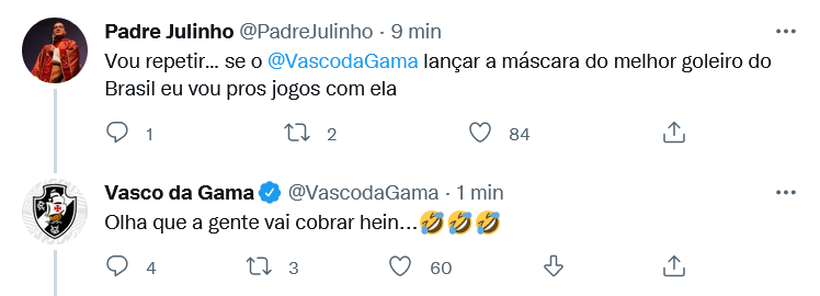 Fonte: Twitter Padre Julinho, Twitter oficial do Vasco