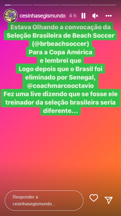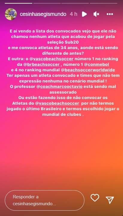 Beach Soccer: Coordenador Cesinha reclama da escassez de vascaínos na Seleção Brasileira