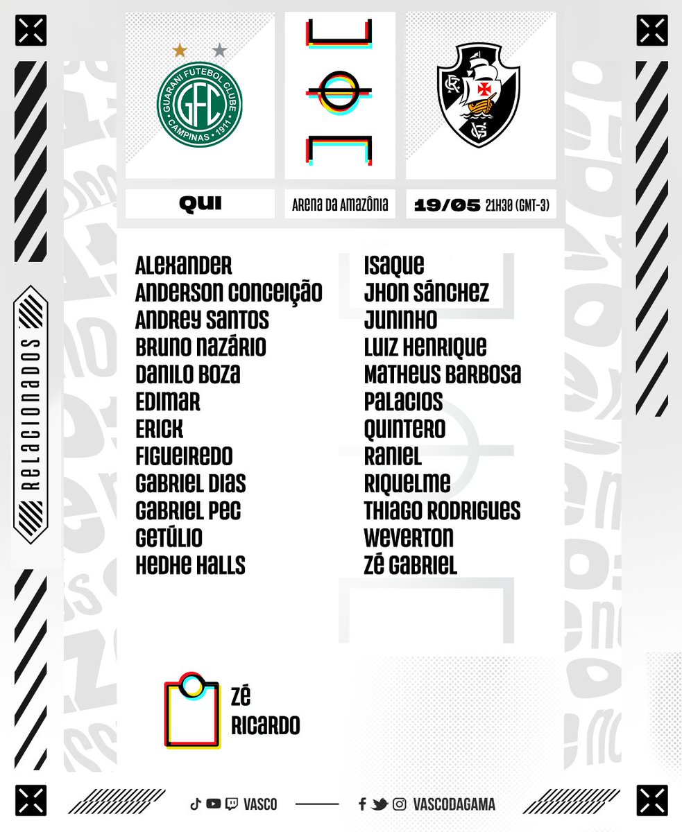 Confira os relacionados do Vasco para o jogo contra o Guarani