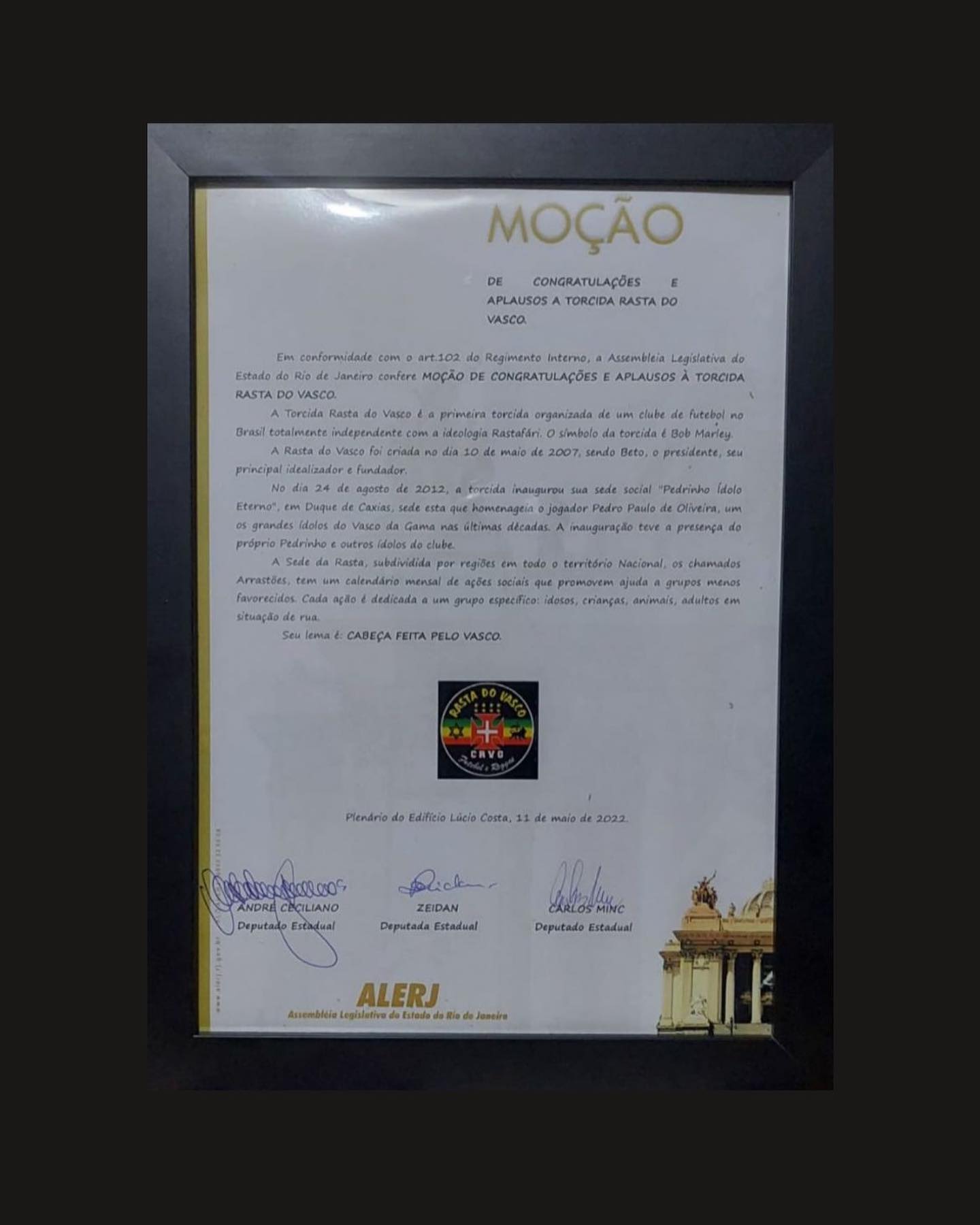 A convite dos deputados @dep.andrececiliano, @carlos.minc, da deputada @deputadazeidanoficial e da @anatorgbrasil, hoje terça feira, dia 17 de Maio de 2022, estivemos presente na Assembleia Legislativa do Estado do Rio de Janeiro @instalerj onde participamos de uma sessão solene de entrega do diploma Cristo Redentor na qual nós da Torcida Organizada Rasta do Vasco fomos homenageados, assim como todas as torcidas organizadas do Rio de Janeiro.