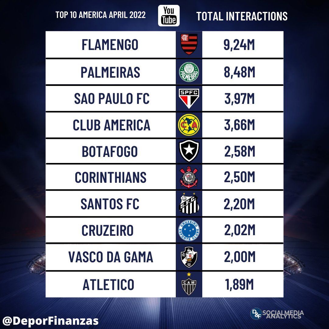 📲 Most popular american football clubs on #youtube during april 2022!