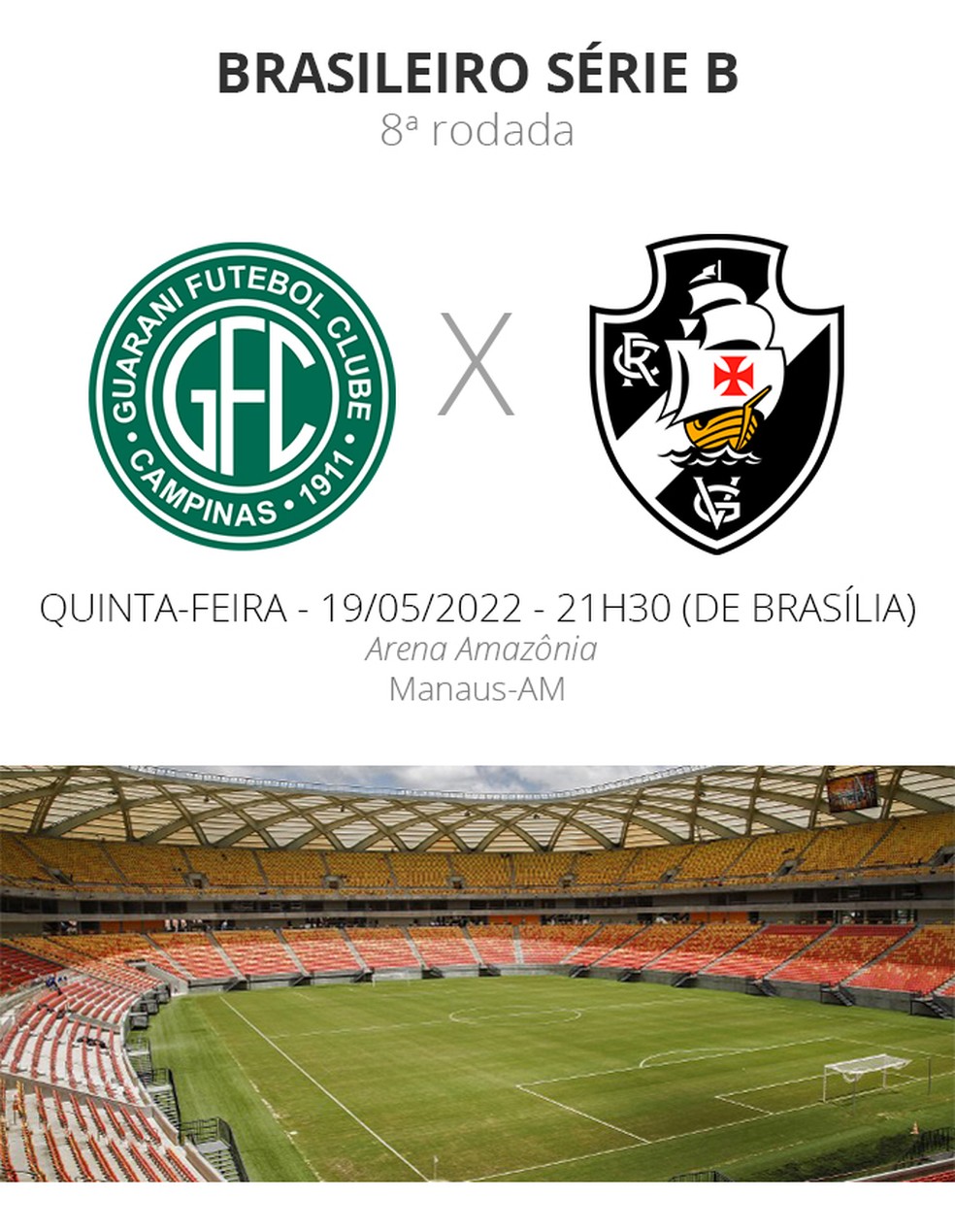 Guarani e Vasco se enfrentam nesta quinta-feira, às 21h30 de Brasília (20h30 no horário local), na Arena Amazônia. Com o gramado do Brinco de Ouro em reforma, o Bugre levou o mando para Manaus.