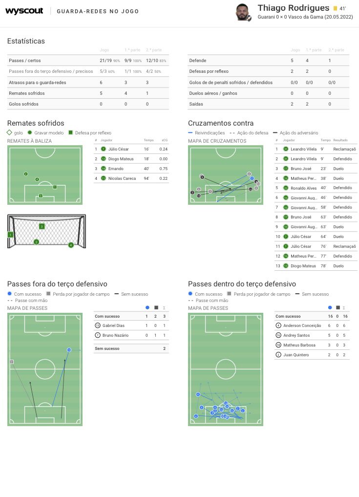 Veja os números do goleiro Thiago Rodrigues em Guarani 0 x 0 Vasco