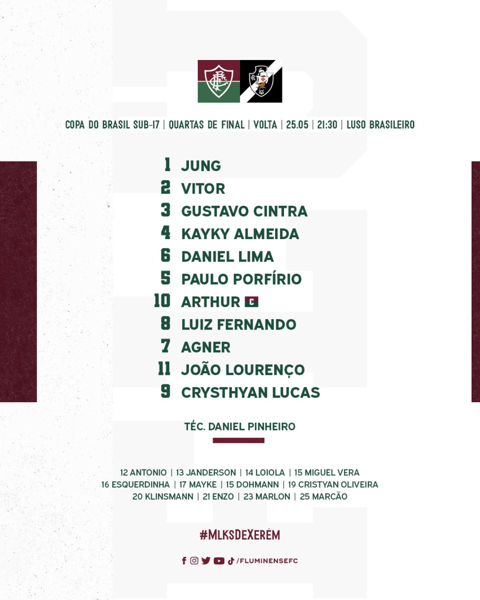 Juvenil: Veja a escalação do Fluminense para o jogo contra o Vasco