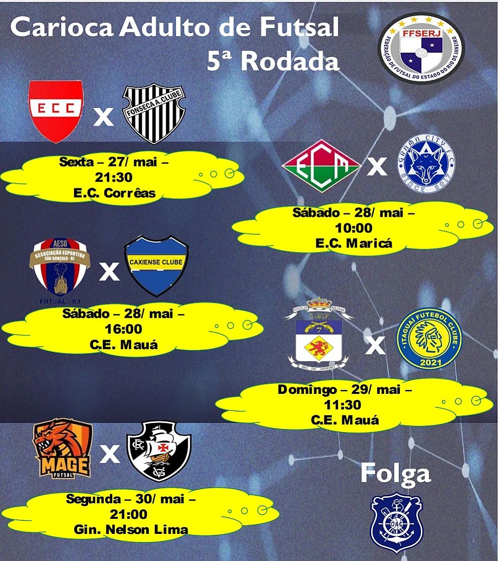 E a 5a rodada ser a aberta só com o encontro de líderes nesta sexta-feira!!!! Confira os demais jogos do Carioca Adulto da @ffserjfutsal