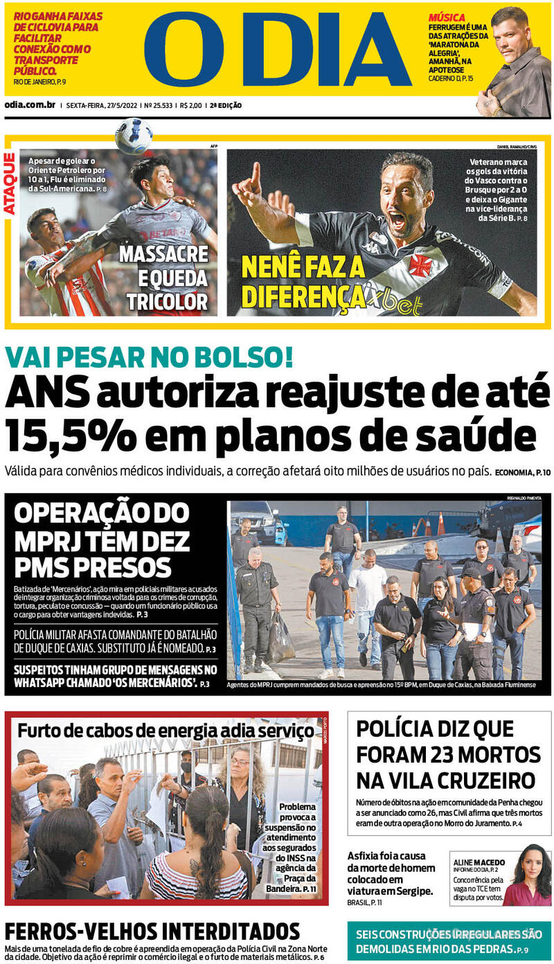 Pelo Brasileiro da Série B, o Vasco derrotou o Brusque por 2 a 0 em São Januário com 2 gols de Nenê e se garantiu no G4 por mais uma rodada. Veja as capas dos jornais.