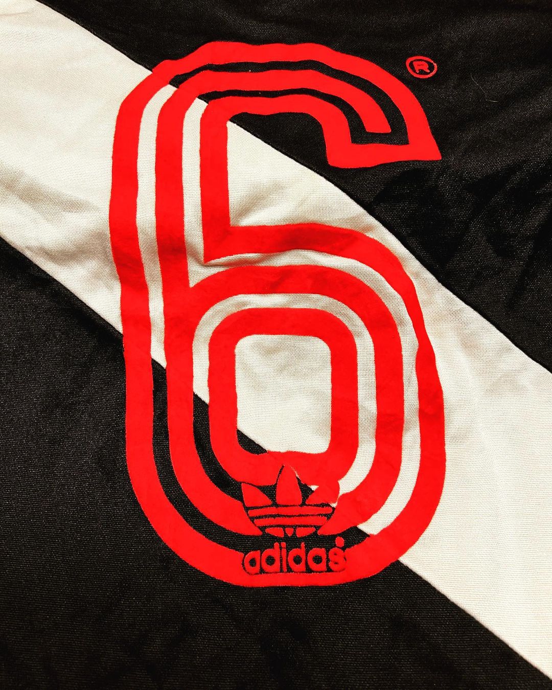 Colecionador mostra detalhes de camisa do Vasco feita pela Adidas nos anos 1980