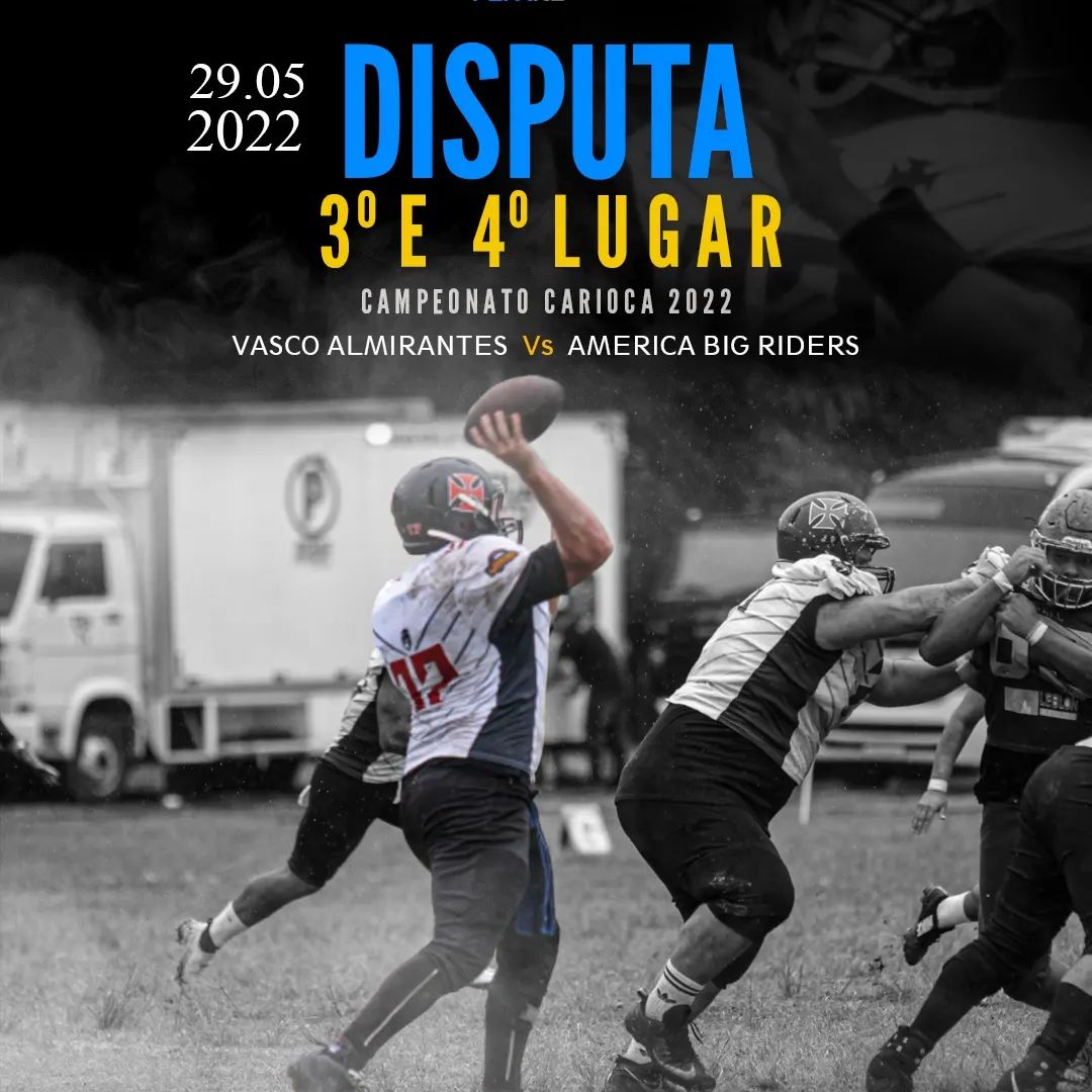 A disputa de 3o lugar do Campeonato Carioca também será dia 29 de maio, às 9:30h, no Centro Esportivo Miecimo da Silva, com um clássico dos gramados:@vascoalmirantes X @americabigriders