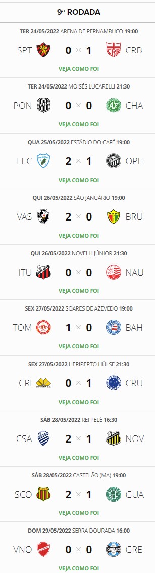 Fonte: NETVASCO (texto), ge (classificação, resultados)