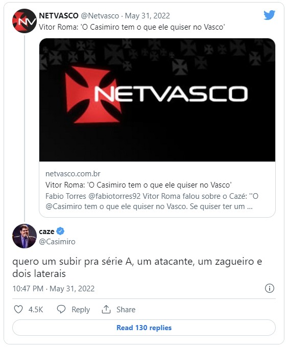 Casimiro responde Vitor Roma: 'Quero um subir pra Série A, um atacante, um zagueiro e dois laterais'