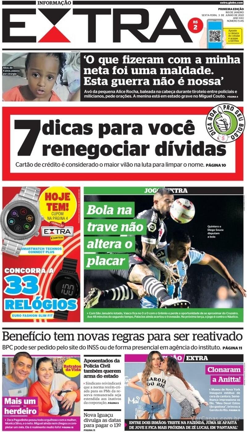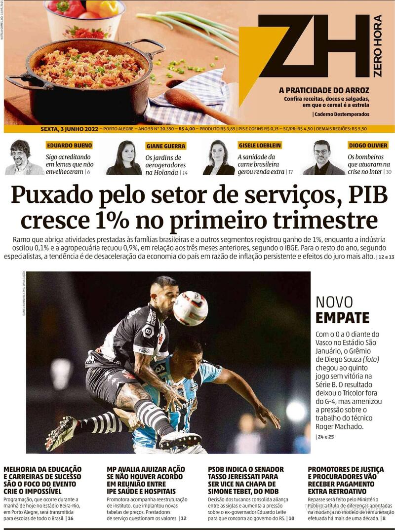 Veja as capas dos jornais após Vasco 0 x 0 Grêmio