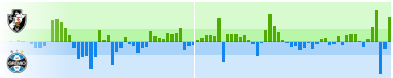 O Vasco contra o Grêmio fez uma das suas piores partidas na temporada, um jogo em que criou pouco e se defendeu mal. Apesar do Tricolor Gaúcho ter atacado pouco, levou perigo ao goleiro Thiago Rodrigues em diversos momentos, que foi obrigado a fazer defesas difíceis. Nem o fator casa, tão pouco a possibilidade de diminuir a distância para o líder motivou a equipe em fazer um jogo melhor, que ficou refém das individualidades, tendo em vista que o coletivo em momento algum deu sinais que ia corresponder. Abaixo, o gráfico que mostra o domínio de cada equipe durante os 90 minutos.