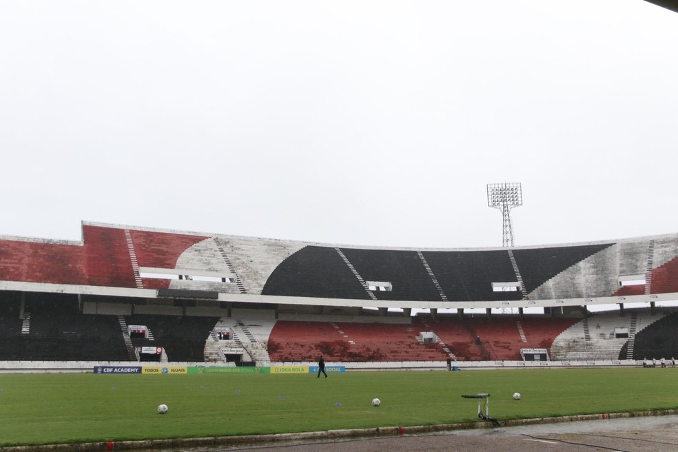 Ao longo do dia, torcedores registraram nas redes sociais o trabalho de funcionários do Náutico no gramado dos Aflitos, que aparentava ter lama em algumas áreas. À noite, encarregados do campo fizeram uma nova checagem e verificaram pontos de acúmulo de água. Identificaram que, além da lateral do campo, diante da arquibancada central, outros pontos do gramado se mostraram encharcados.