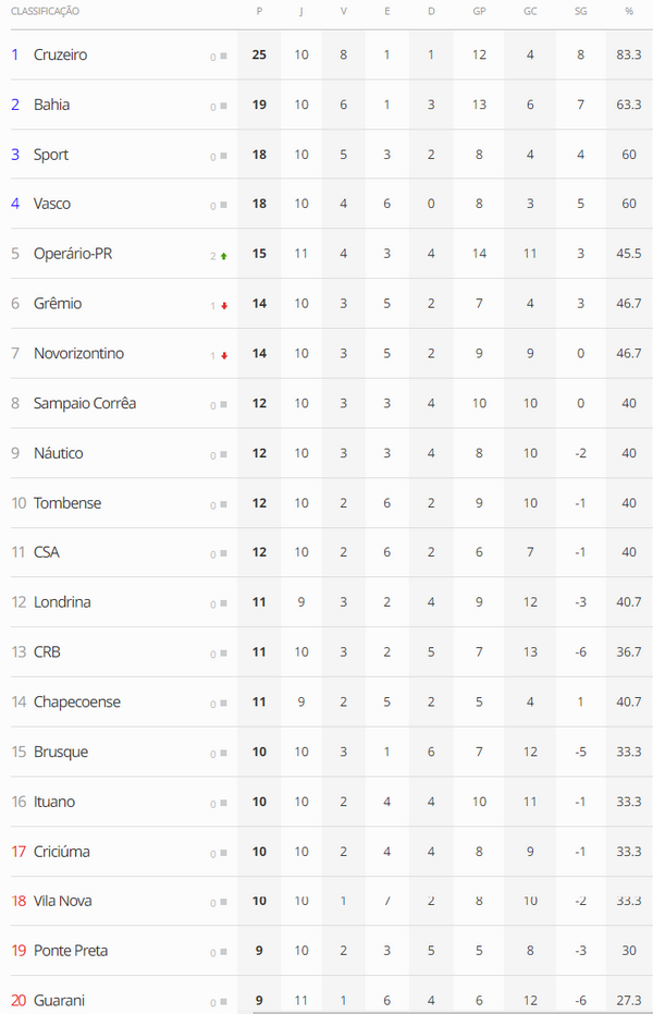 Já o Operário entra de vez no bolo da briga do G4. Passou o Grêmio e, agora, é o 5º, com 15 pontos.
