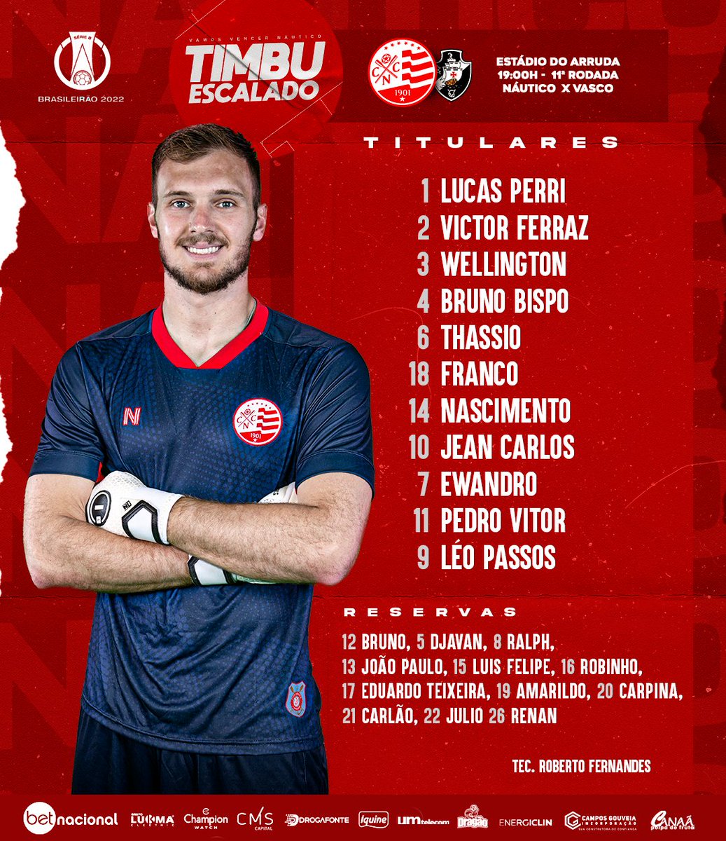 Veja a escalação do Náutico para o jogo contra o Vasco