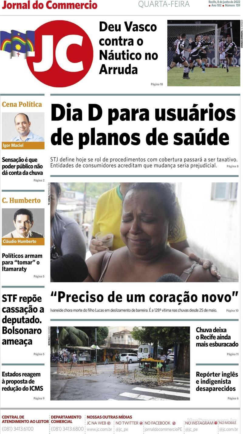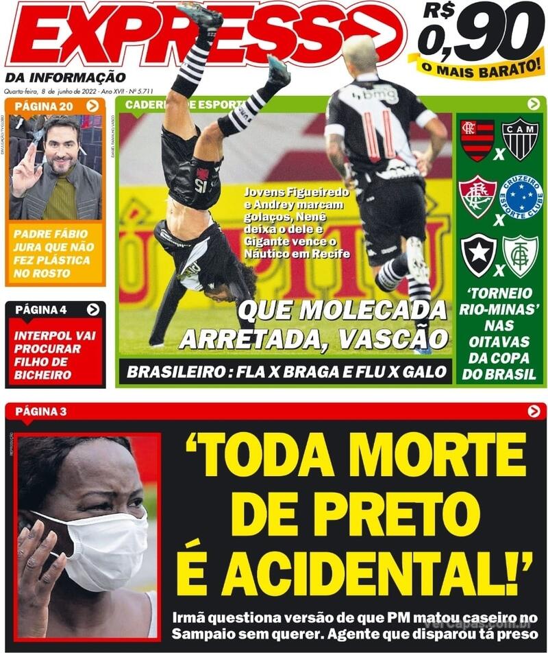 Veja as capas dos jornais após Náutico 2 x 3 Vasco