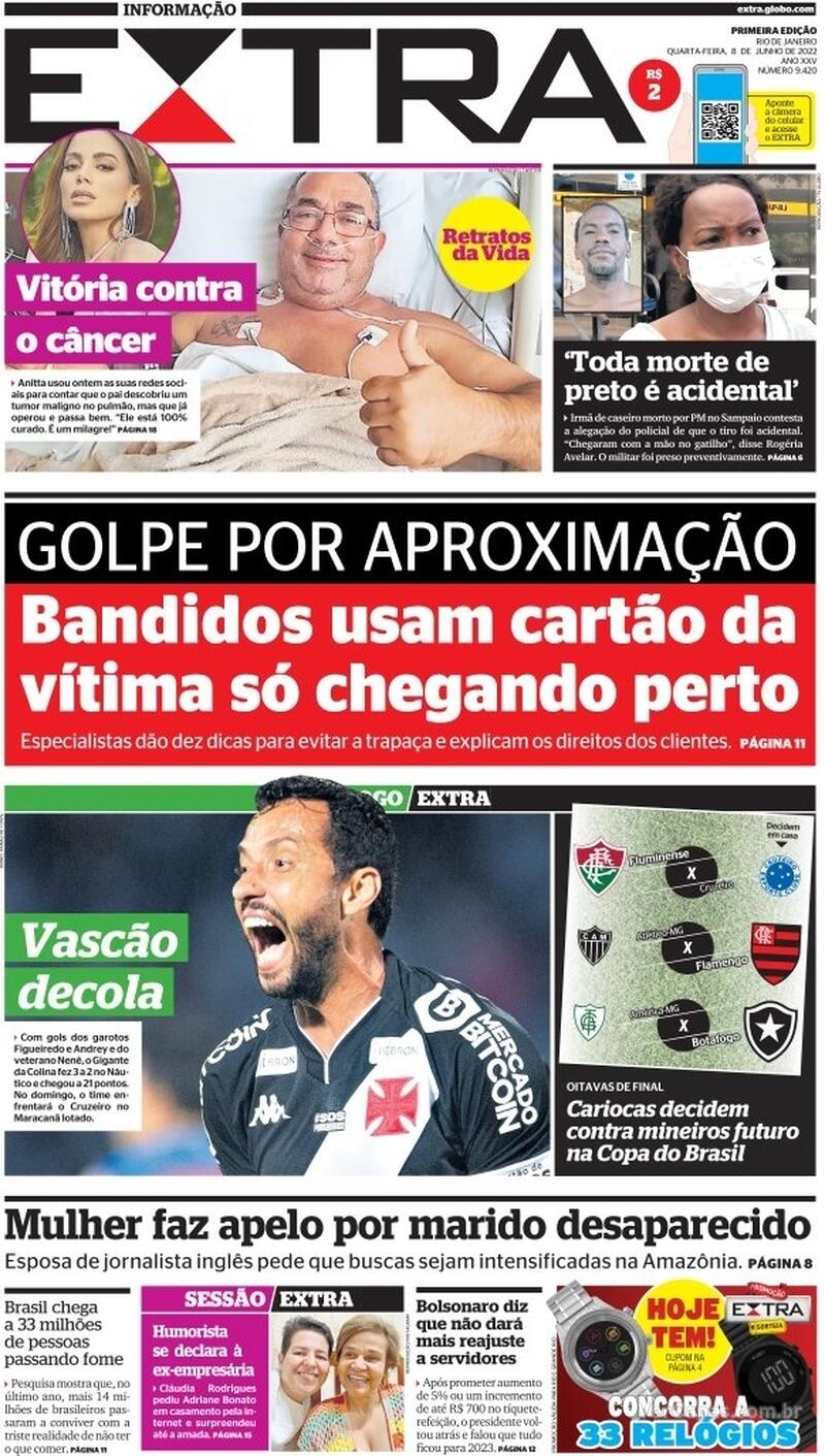 Pelo Brasileiro da Série B, o Vasco venceu o Náutico fora de casa por 3 a 2 e pulou para a 2ª colocação. Veja as capas dos jornais.