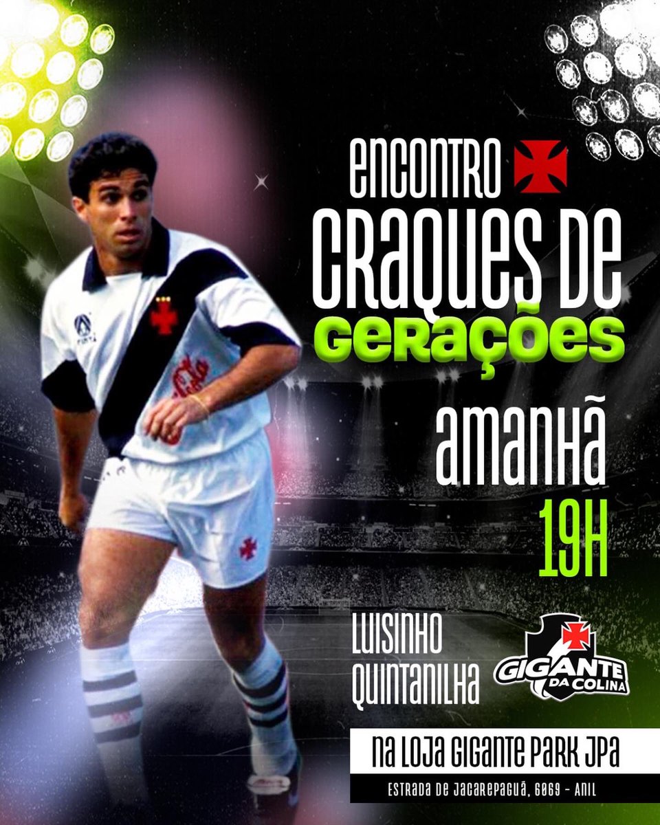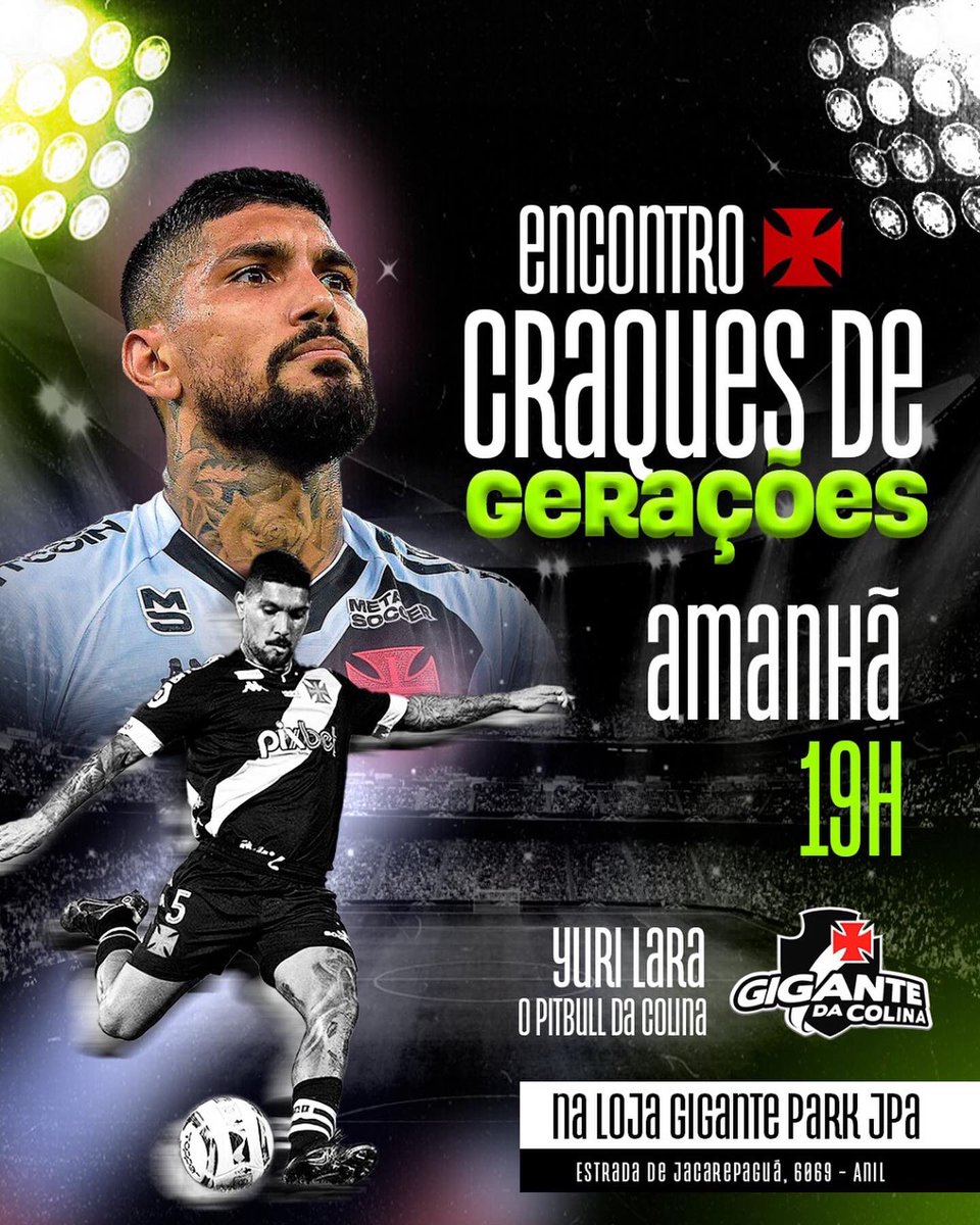 Yuri Lara e Luisinho Quintanilha darão autógrafos na loja oficial do Vasco no Park Jacarepaguá nesta 6ª-feira às 19h