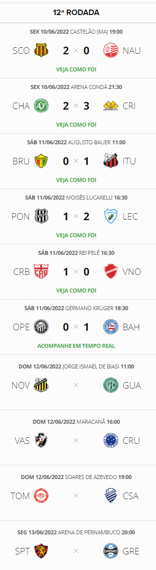 Veja como ficou a classificação do Campeonato Brasileiro da Série B após os jogos deste sábado pela 12ª rodada. O Vasco, que enfrenta o Cruzeiro neste domingo, segue na 3ª posição e não passará o Bahia em caso de vitória. Restam 4 jogos para fechar a 12ª rodada.