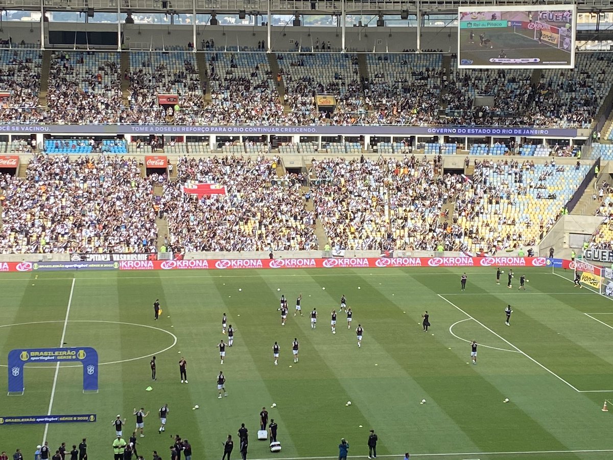 Vasco sobe nesse momento para iniciar o aquecimento e a torcida inflama no Maracanã. #VASxCRU