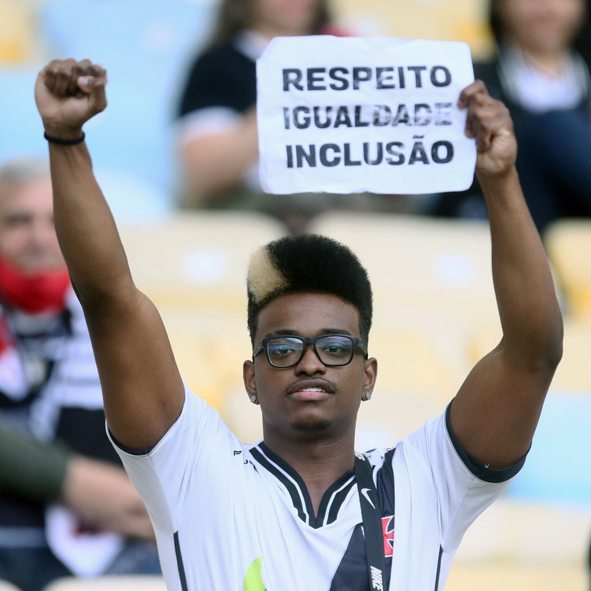 Vasco publica foto de torcedor no Maracanã com cartaz com 'respeito', 'igualdade' e 'inclusão'