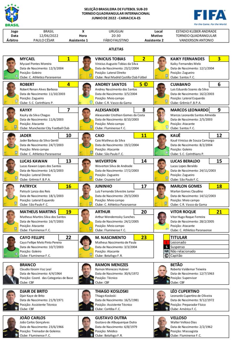 Saiu a escalação da #SeleçãoSub20 para o jogo de hoje contra o Uruguai!