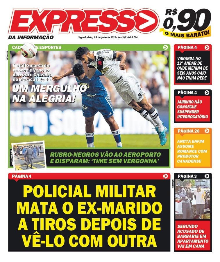 Pelo Brasileiro da Série B, o Vasco venceu o líder Cruzeiro por 1 a 0 no Maracanã. Veja as capas dos jornais.