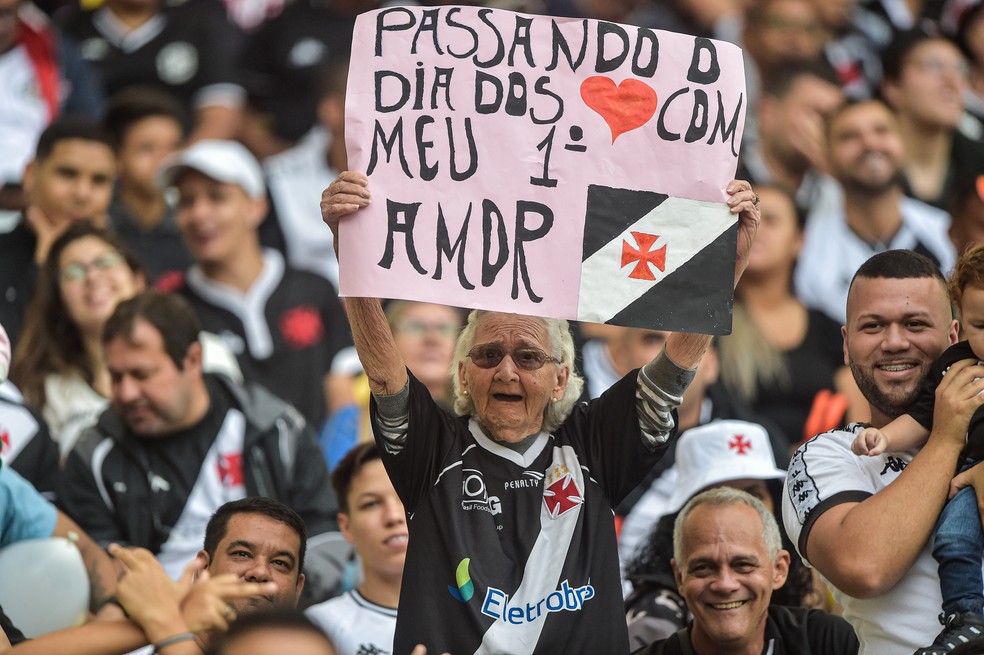 Na vitória do Vasco por 1 a 0 sobre o Cruzeiro no último domingo, em jogo válido pela 12ª rodada da Série B do Brasileirão, a festa da torcida roubou a cena. Mais de 60 mil vascaínos empurraram o time e contribuíram para o resultado que diminuiu para quatro pontos a diferença para o líder do campeonato. Entre eles, uma senhorinha e o seu cartaz.