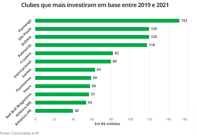 Clubes que mais investiram em base entre 2019 e 2021