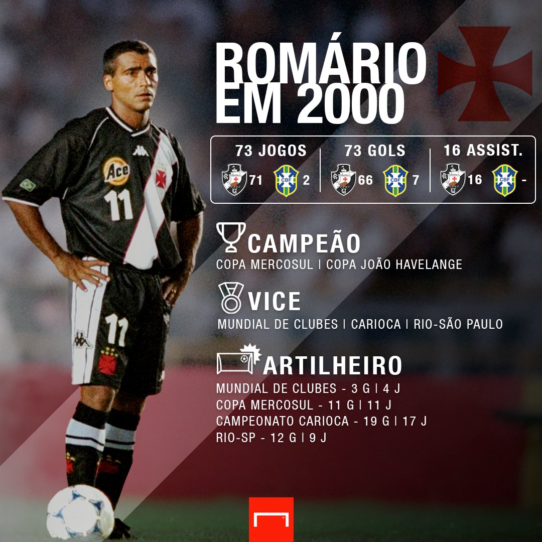 Veja os números de Romário pelo Vasco e pela Seleção em 2000