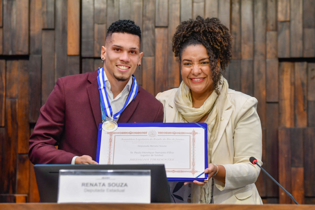 Antes de entregar a medalha ao jogador, a deputada Renata Souza reforçou sobre a importância do gesto de Paulinho na luta por mais respeito as religiões de matriz africana.