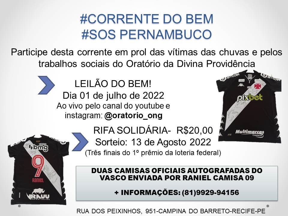 Quando esteve no Recife, o Vasco doou duas camisas para o Oratório da Divina Providencia leiloar e arrecadar recursos para ajudar as vítimas das chuvas. Para quem tiver interesse: