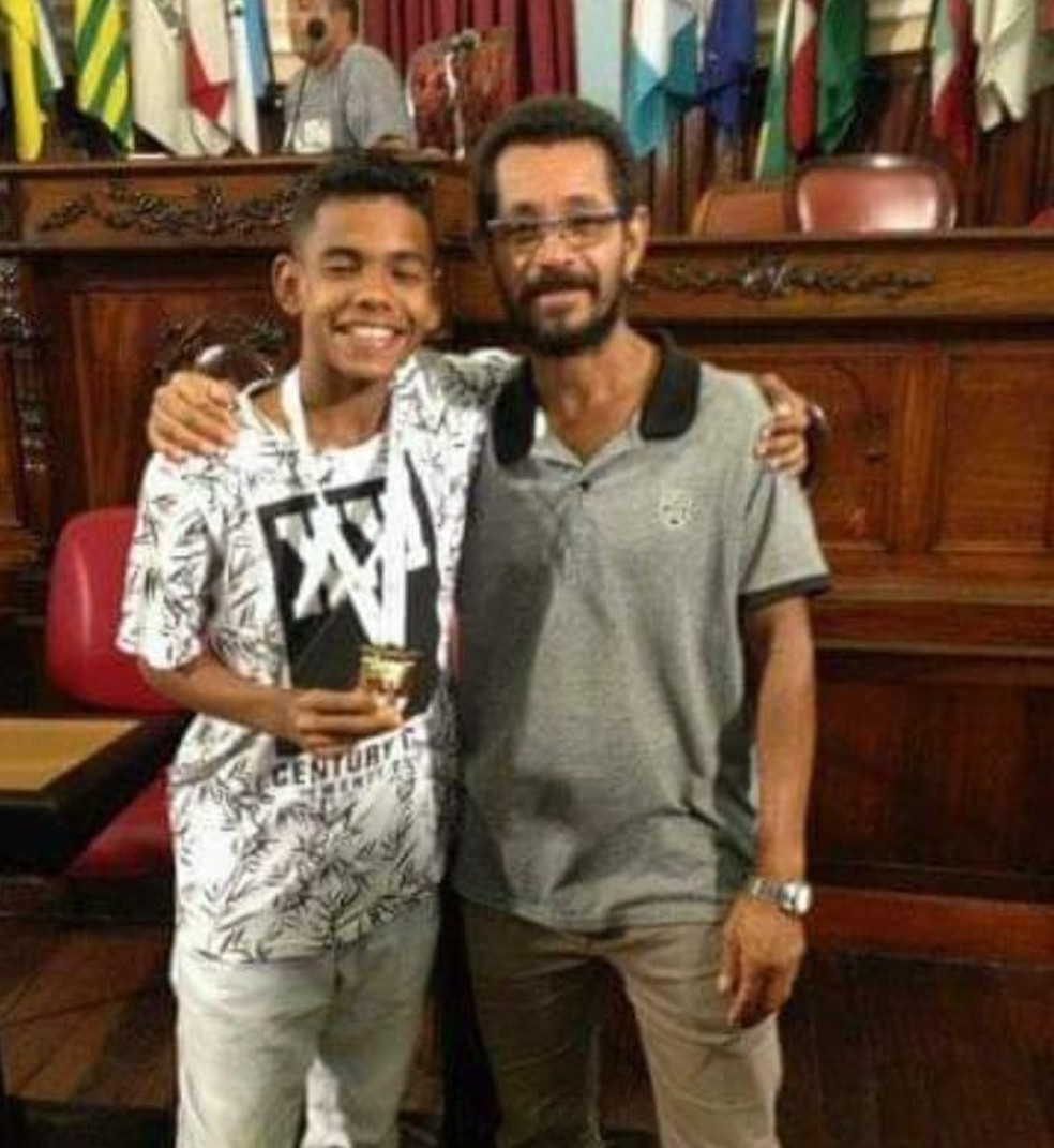 Na ocasião, recebeu uma medalha na Câmara de Veadores de Niterói e tudo. O pai Ricardo sempre ao lado, orgulhoso.