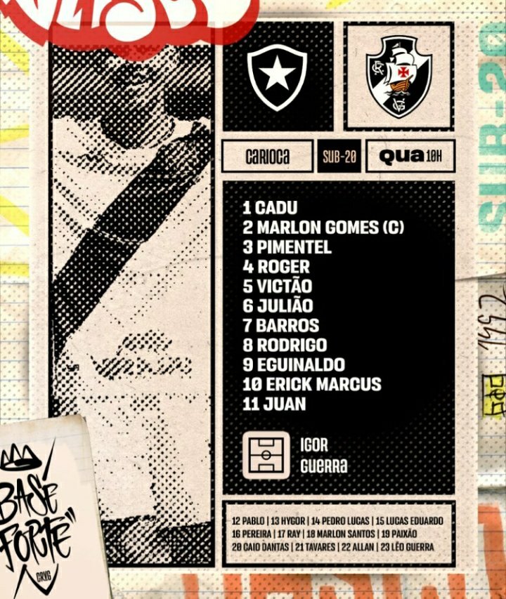 Juniores: Veja a escalação do Vasco para o jogo contra o Botafogo