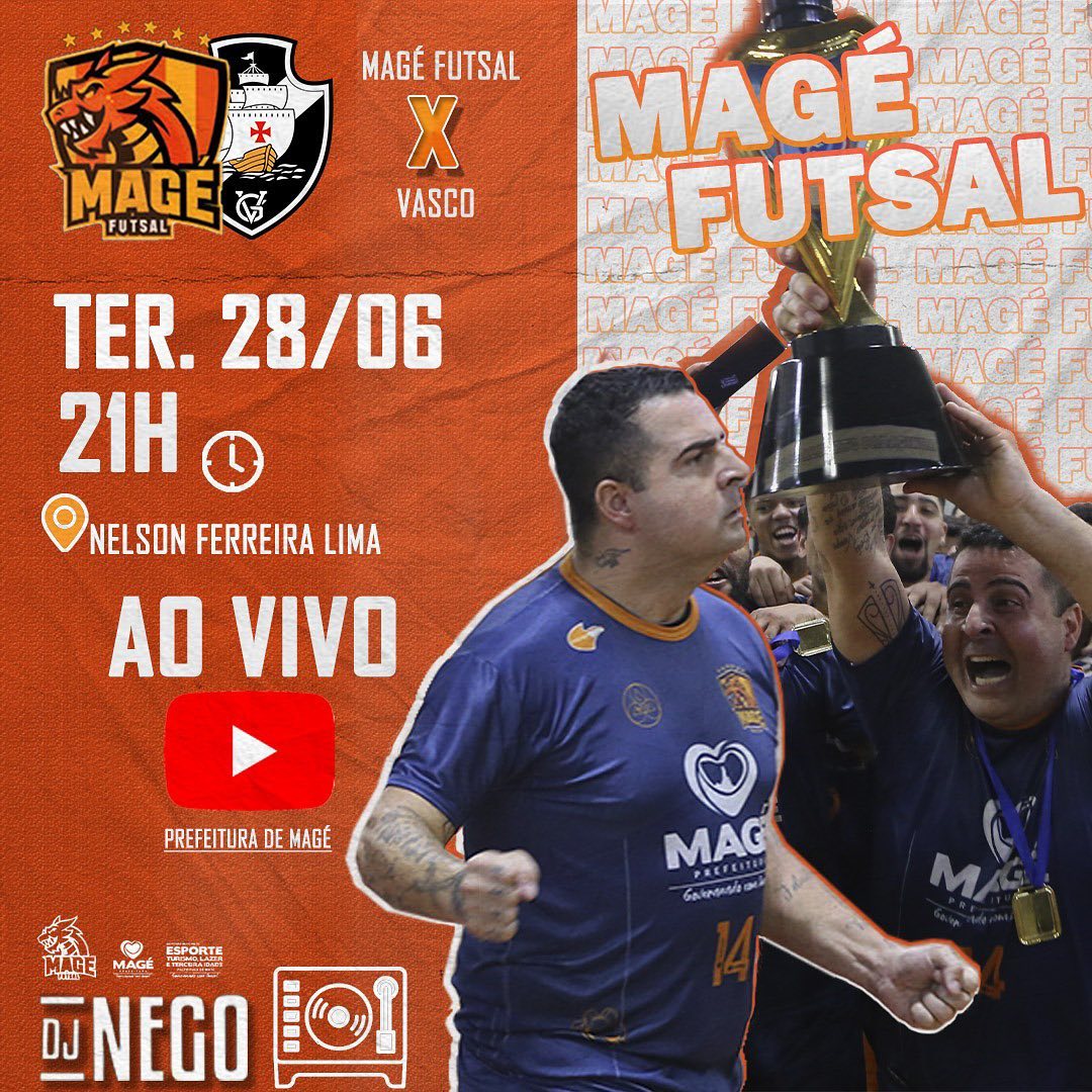 A partida será transmitida no YouTube da Prefeitura de Magé. Se inscreva pra não perder nada! 🤙