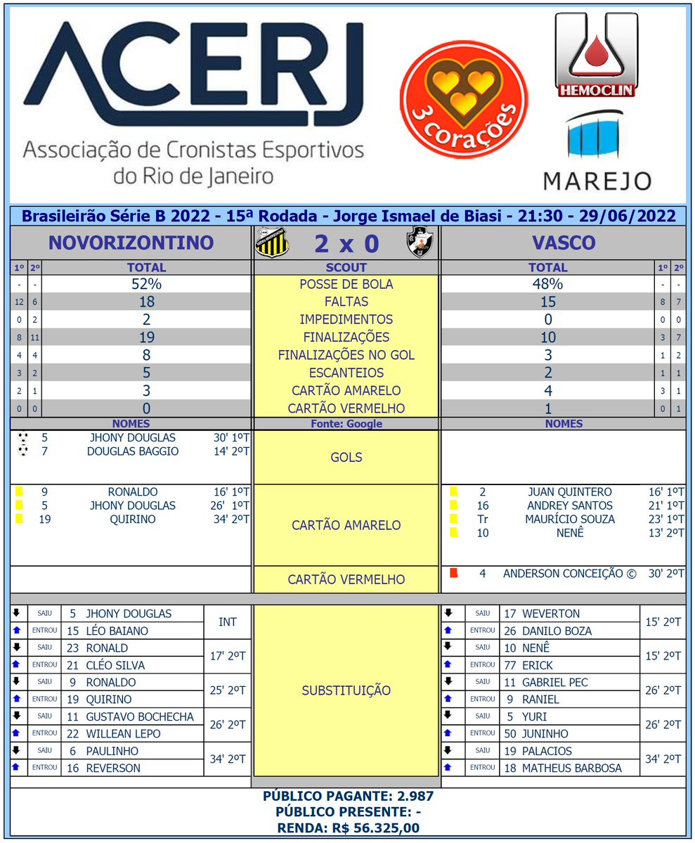Cartões amarelos: Ronaldo e Jhonny Douglas (Novorizontino); Quintero, Nenê e Andrey Santos (Vasco)
