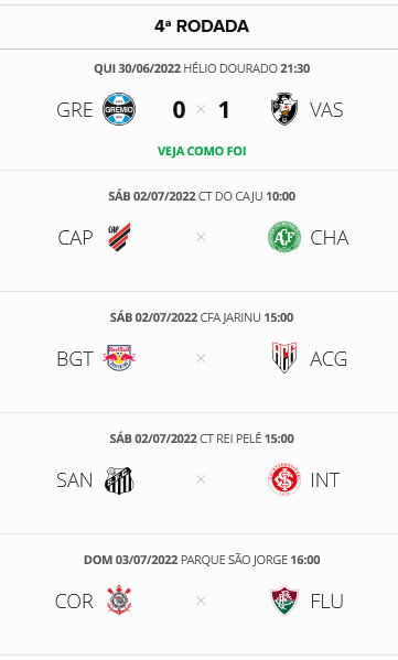 Fonte: NETVASCO (texto), ge (classificação, resultados)