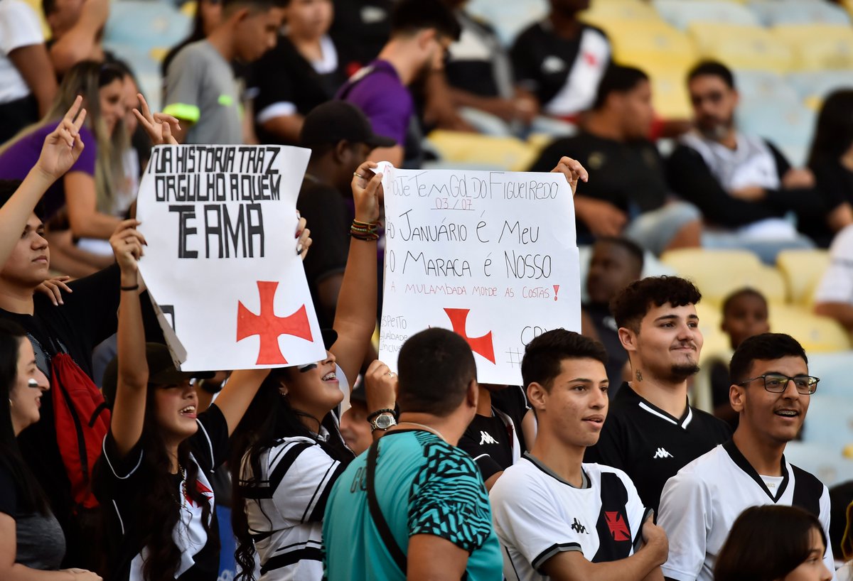 03/07/22 - Torcedores do Vasco distribuem cartazes do lado de fora do Maracanã