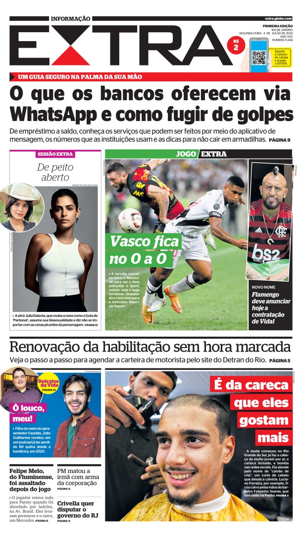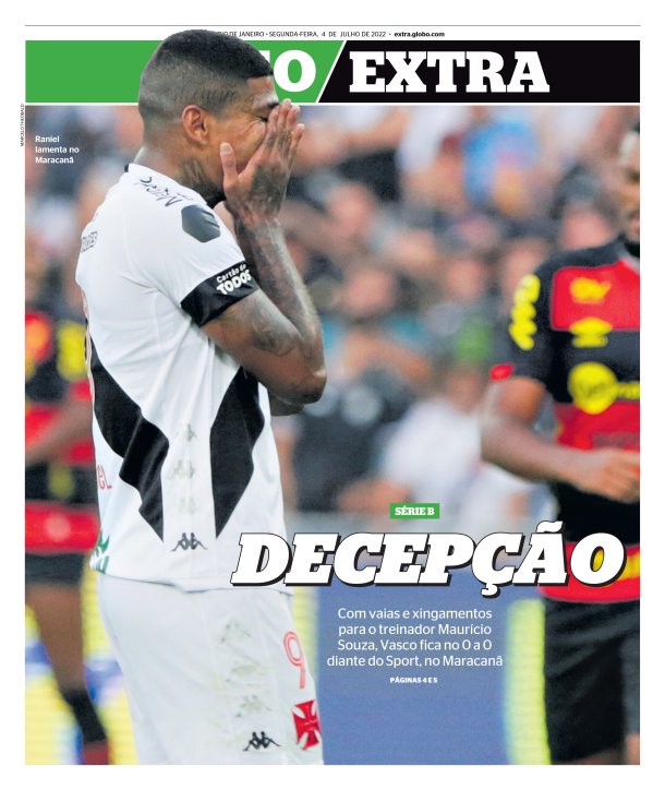 Veja as capas dos jornais após Vasco 0 x 0 Sport