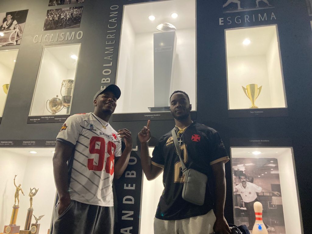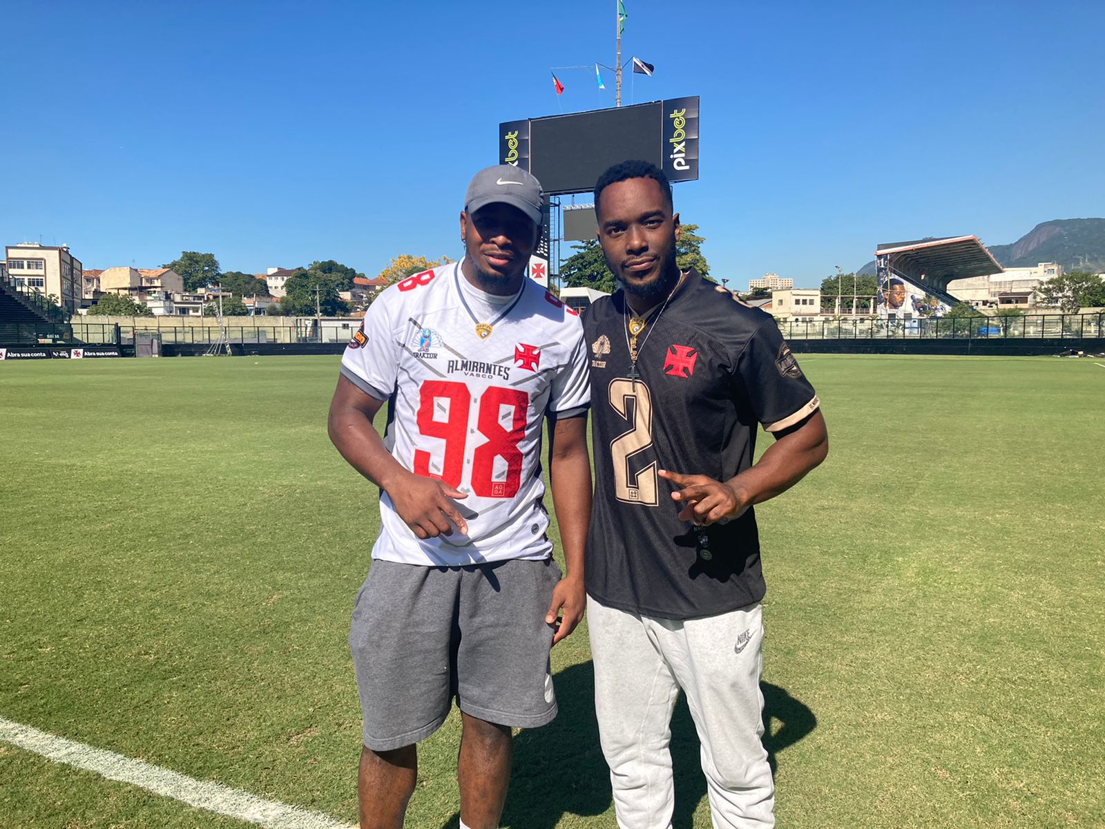 Reforços do Vasco Almirantes para a disputa da Liga Brasileira de Futebol Americano (Liga BFA), o wide receiver Marcus Peterson e o quarterback Dominique White chegaram ao Rio de Janeiro na manhã desta terça-feira e foram direto para o Estádio de São Januário. Os atletas foram recebidos pelo diretor executivo Marcel Dantas e pelo head coach Bruno Barandas e visitaram o Espaço Experiência e conheceram mais da história do Gigante da Colina.