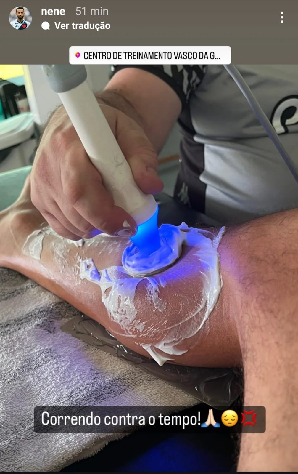 O meia Nenê dificilmente voltará ao time do Vasco no confronto com o Criciúma, no próximo sábado (09), pela Série B. Mesmo com o tratamento intensivo, além do avanço para os trabalhos na academia, o jogador deve seguir fora.