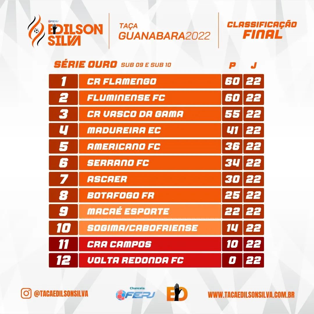 Classificação final da 1° fase série Ouro