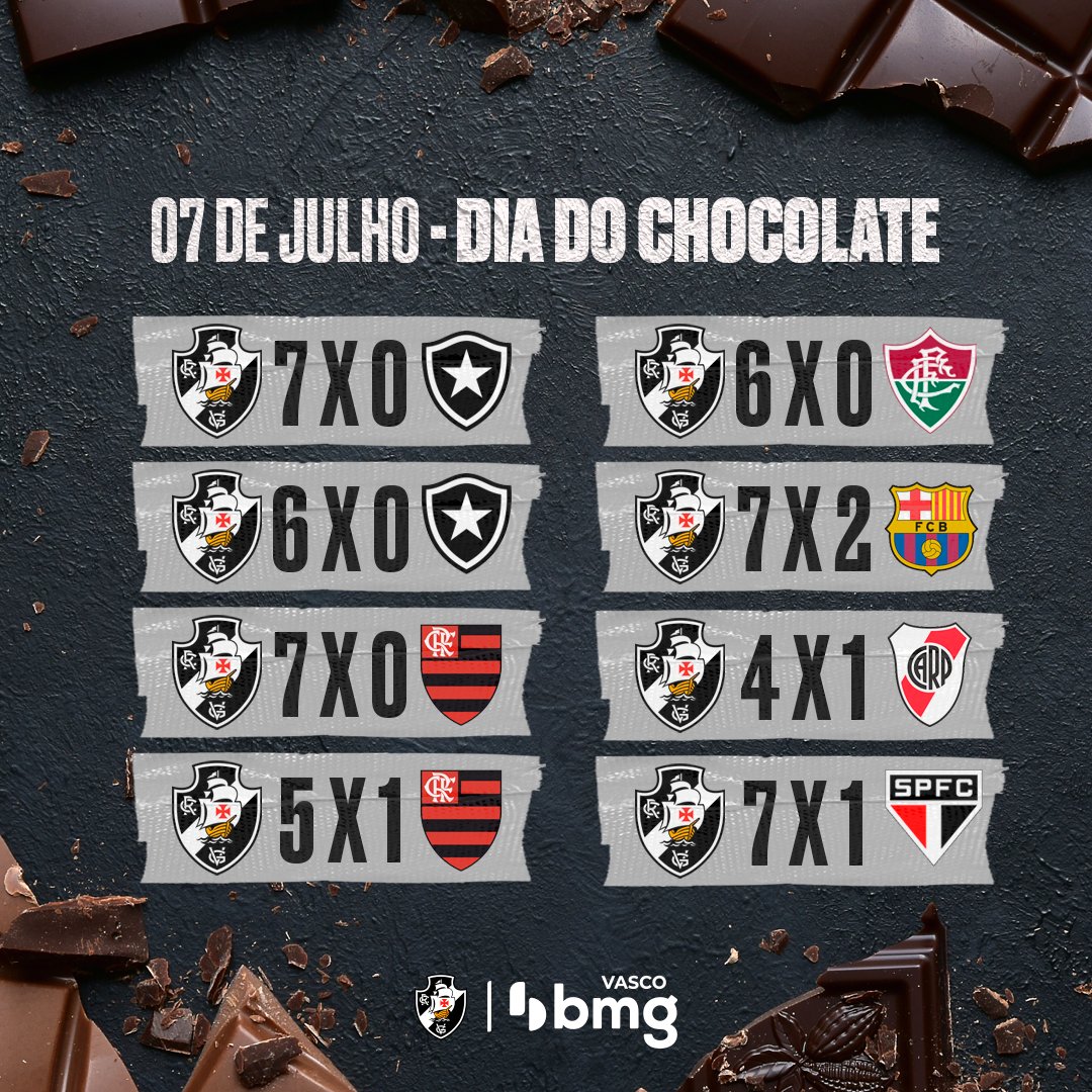 No Dia Mundial do Chocolate, Vasco Bmg relembra goleadas históricas do clube; confira