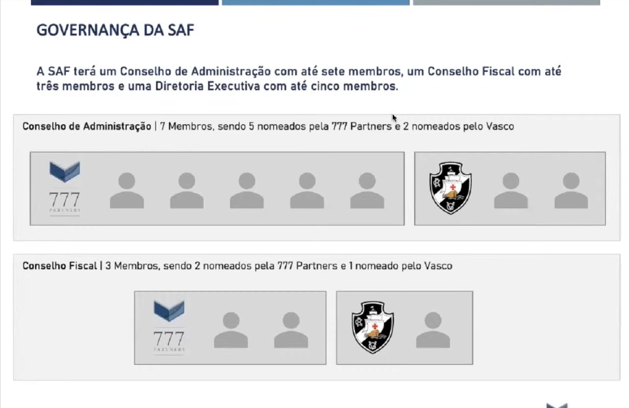 Divisão do conselho de administração da Vasco SAF.