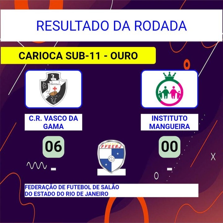 Futsal Base: Vasco vence o Instituto Mangueira por 6 a 0 pelo Carioca Sub-11