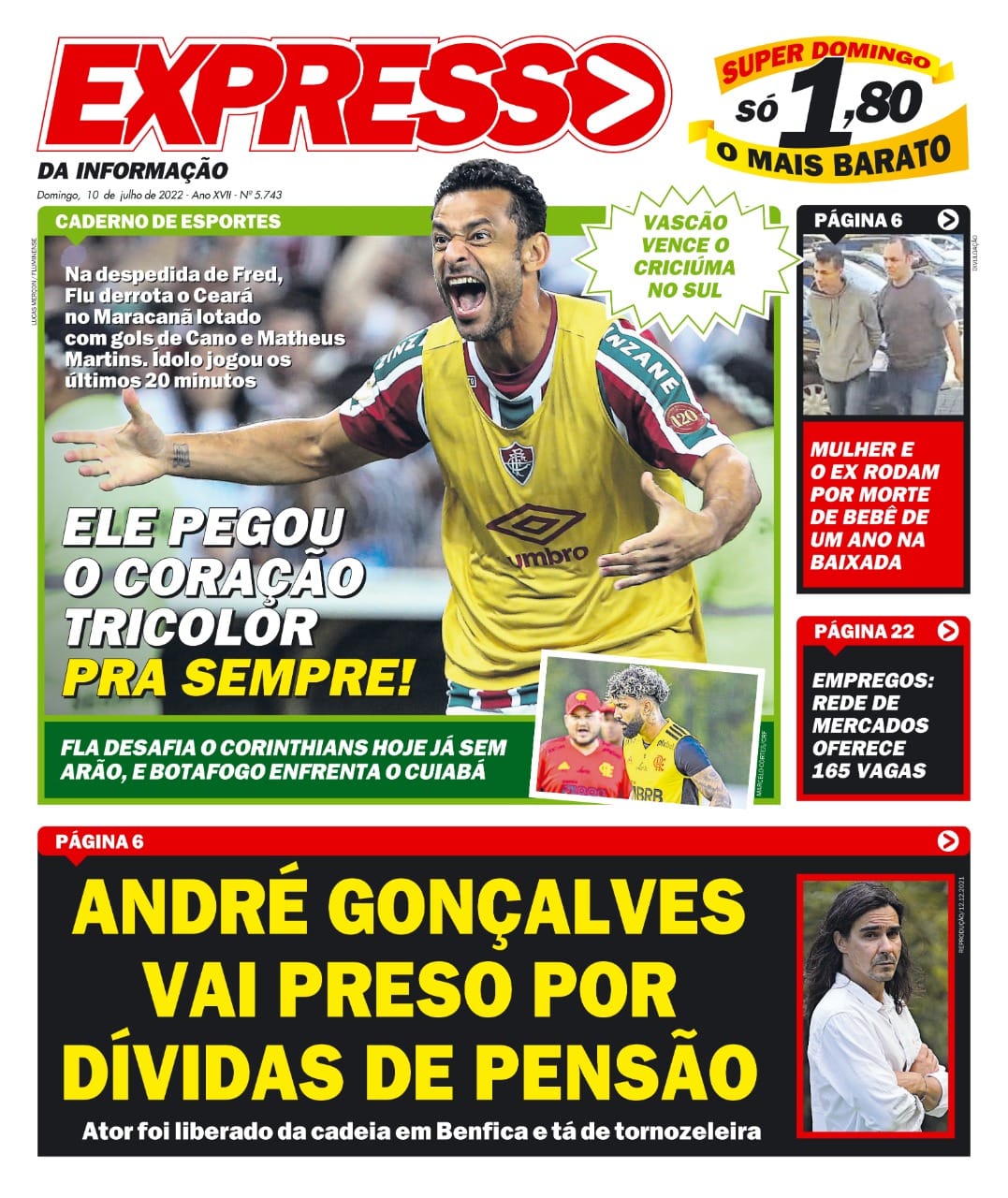 Pelo Brasileiro da Série B, o Vasco derrotou o Criciúma por 1 a 0 em Criciúma, gol de Raniel, e se consolidou ainda mais no G4. Veja as capas dos jornais.