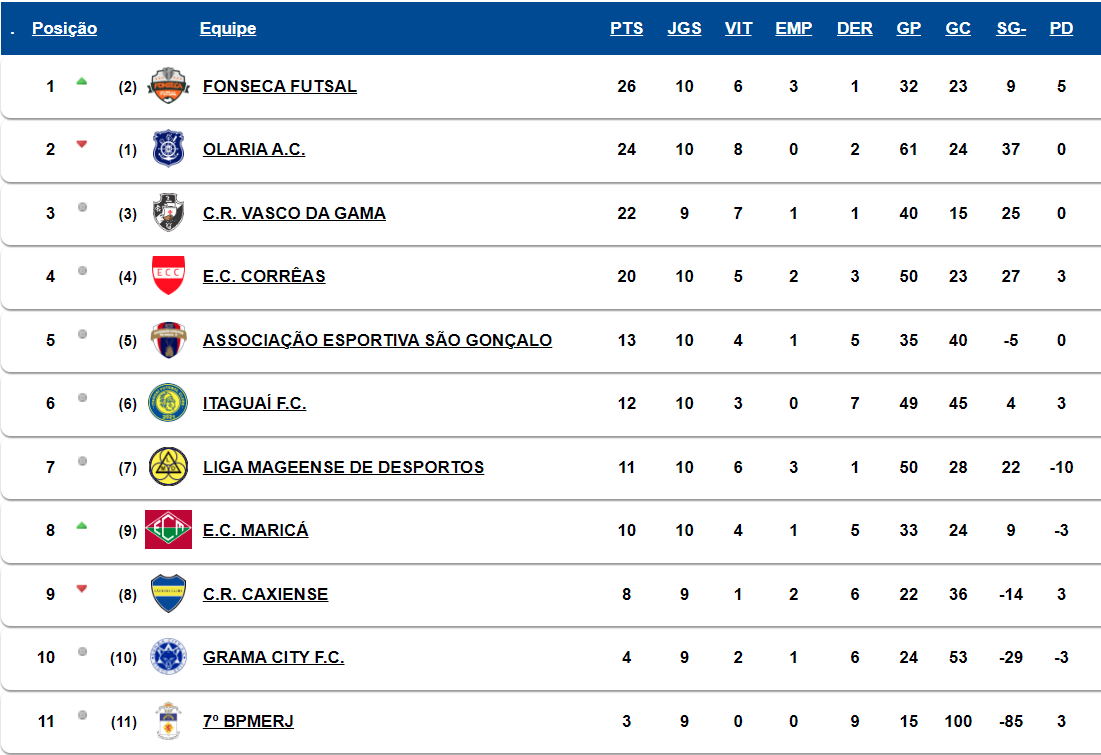 Fonte: NETVASCO (texto), FFSERJ (classificação)