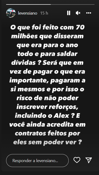 Entraram 70M no clube, em fev/2022, como empréstimo e o dizer da direção era de que tal verba seria utilizada para satisfazer pendências referentes às operações do clube ao longo do ano e entre elas está, claro, a exemplificada acima, pois impacta exatamente nisso.